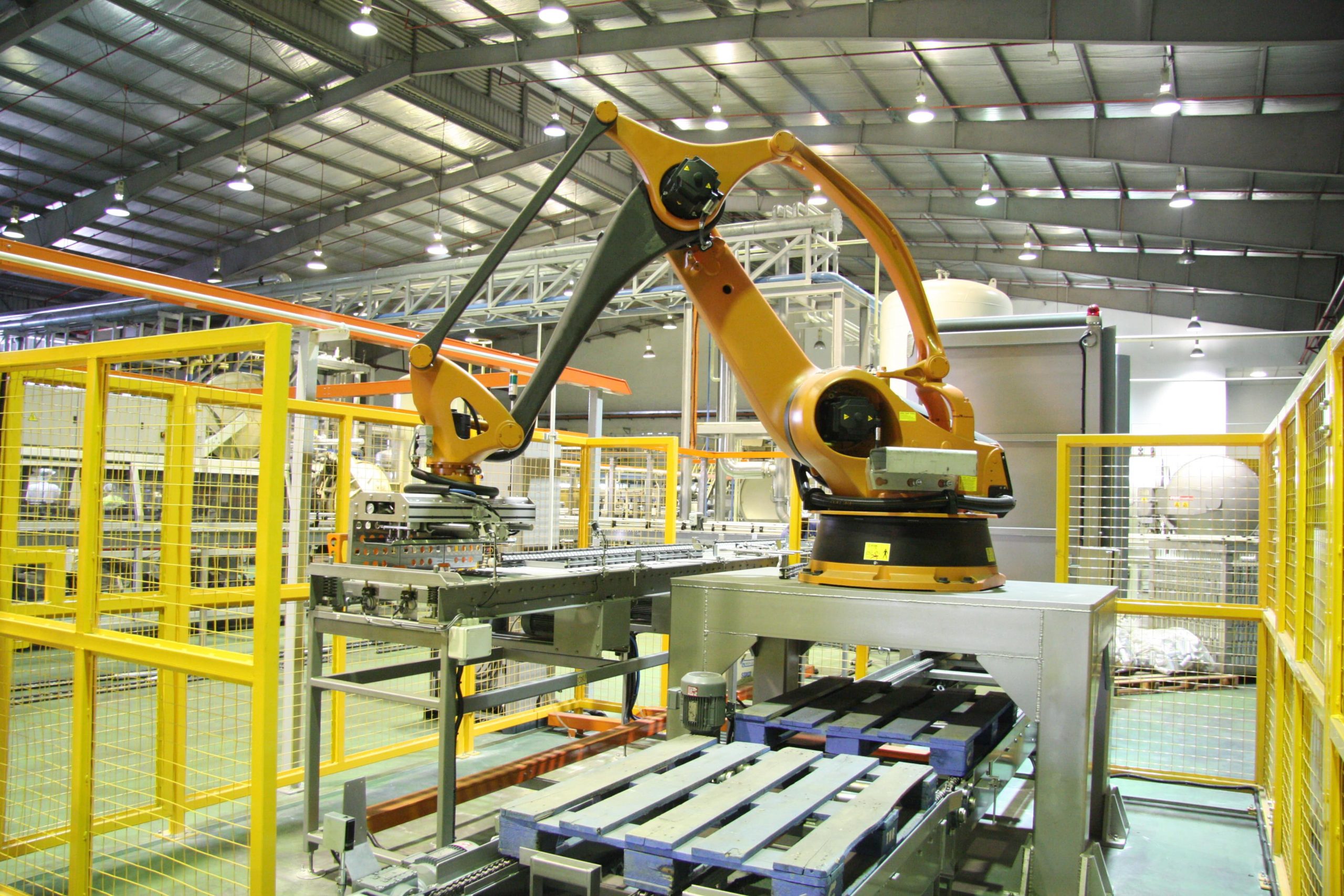این دستگاه جهت چیدمان محصولات بسته بندی شده روی یکدیگر جهت حمل سریع و آسان با نوارنقاله و یا لیفتراک طراحی شده است . دستگاه پالتایزر دارای چند بخش شامل نوارنقاله ورودی و سینی چیدمان و نوار نقاله خروجی است . این دستگاه با سرعت بالا محصولات بسته بندی را روی پالت چیدمان می نماید و سپس آن را به قسمت خروجی هدایت مینماید. عملکرد این دستگاه کاملا اتوماتیک بوده و بسته ها را طوری روی یکدیگر قرار میدهد که محصولات در حین حمل سقوط نمیکنند.